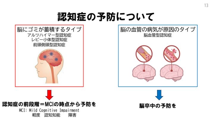 これまでの講話でも扱ってきた生活習慣病を予防する和食中心の食生活や定期的な運動習慣は、認知症予防にも効果的です。それに加え、質の良い睡眠をとり、社会交流や趣味を持つことで脳機能を維持できると言われています。